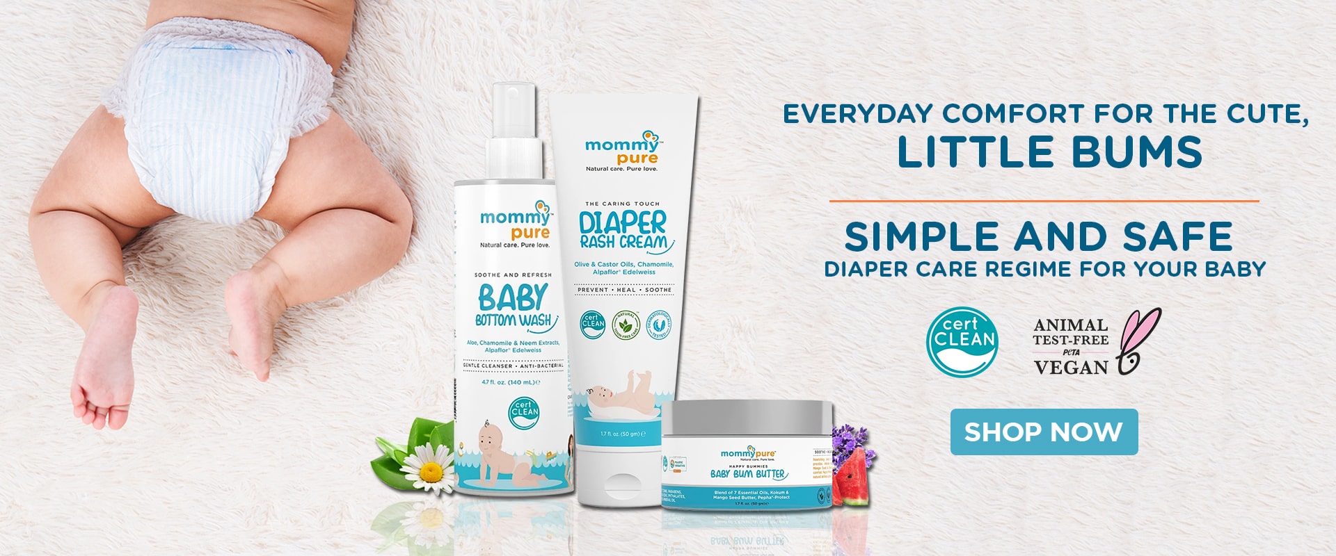 Diaper Care is a big task for all parents, and if it's not taken care of well, it can cause many skin-related issues. We bring to you the complete Diaper Care range for your baby which includes India's 1st Rinse-free Baby Bottom Wash Spray, Baby Bum Butter, and Baby Diaper Rash Cream made with all-natural ingredients.