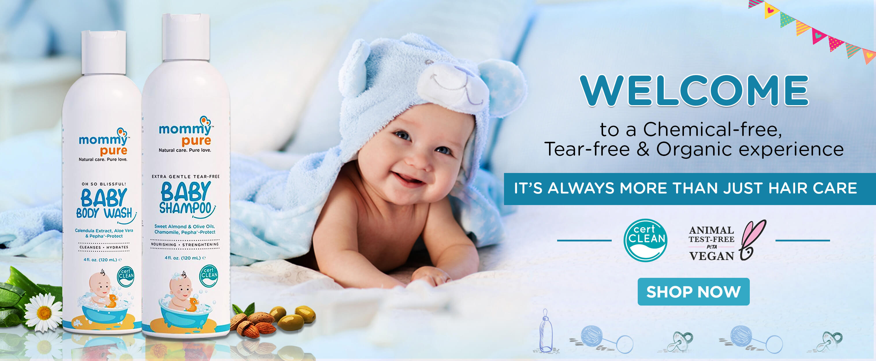 Made with all-natural extract, our Haircare range has baby shampoo which is made of all natural and organic ingredients. Our Baby Shampoo has all the properties which makes it the best shampoo for babies. It promotes healthy and strong hair and also deeply nourishes, conditions and prevents dryness. All our products are completely Natural, Free of any Harmful Chemicals, CertClean Certified, Cruelty-Free, Dermatologically Tested, and our products are completely Safe on the skin.